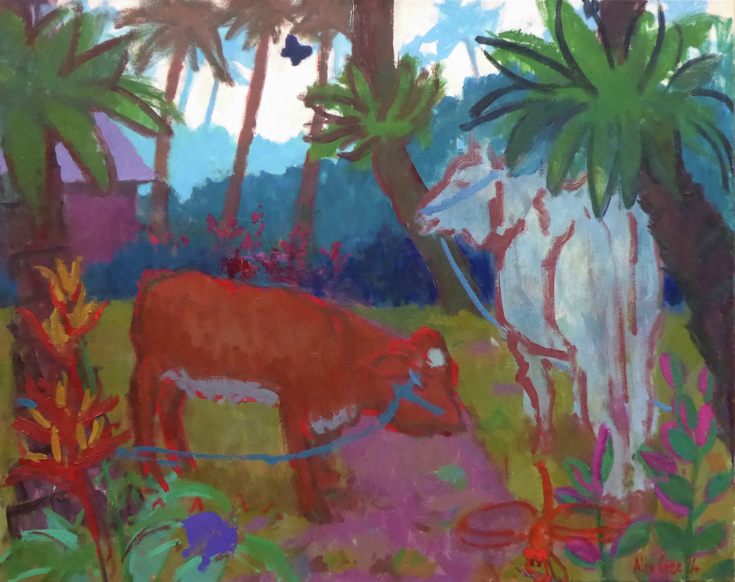 Alex studied at Canterbury Christchurch College and the Royal Drawing School, both of which champion work from direct observation. The 'Euston Road' tradition and artists such as Uglow loomed large. In recent years he has taken on a somewhat fauvist flavour.