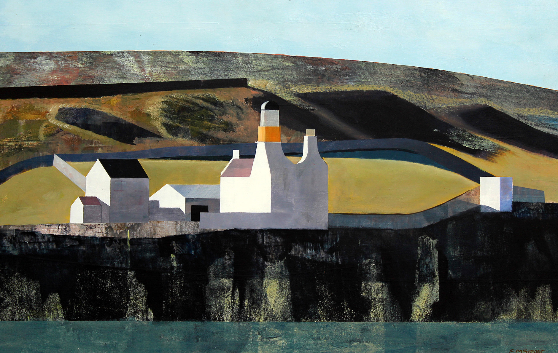 A common focus of Euan McGregor’s work is the lighthouse. Using these structures to show not only their utilitarian nature but also how they connect with our coastal extremities as an island nation. Lighthouses have formed a ring of protection around the UK for thousands of years - from lit beacons to early Roman structures. In this series of paintings McGregor depicts the familiar structures with a reverential quality and spotlights their site-specific nature, painstakingly engineered to fit their often hostile environments.