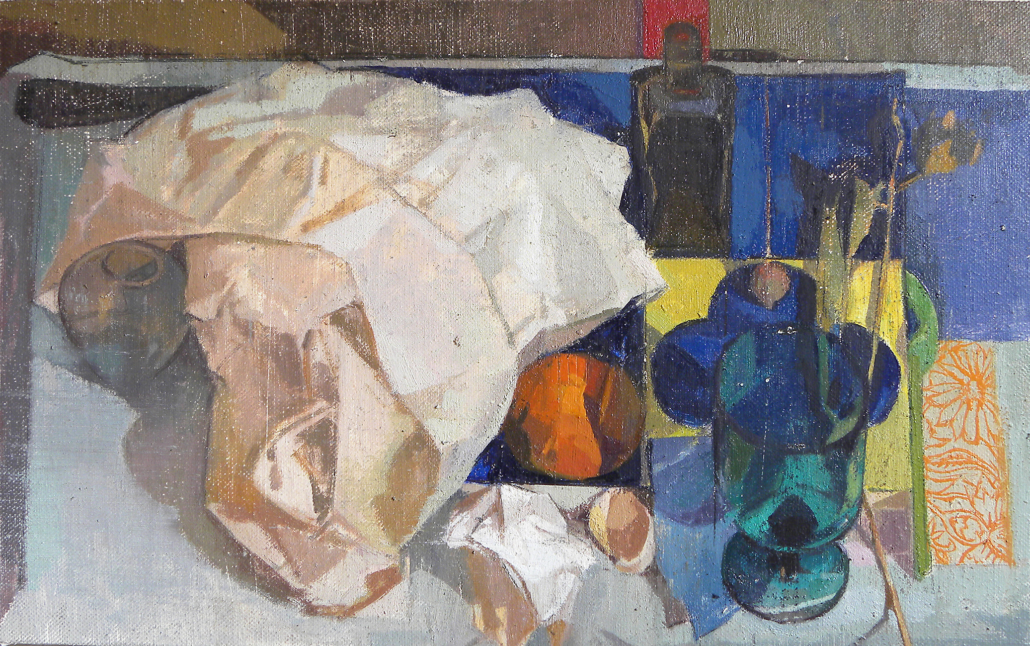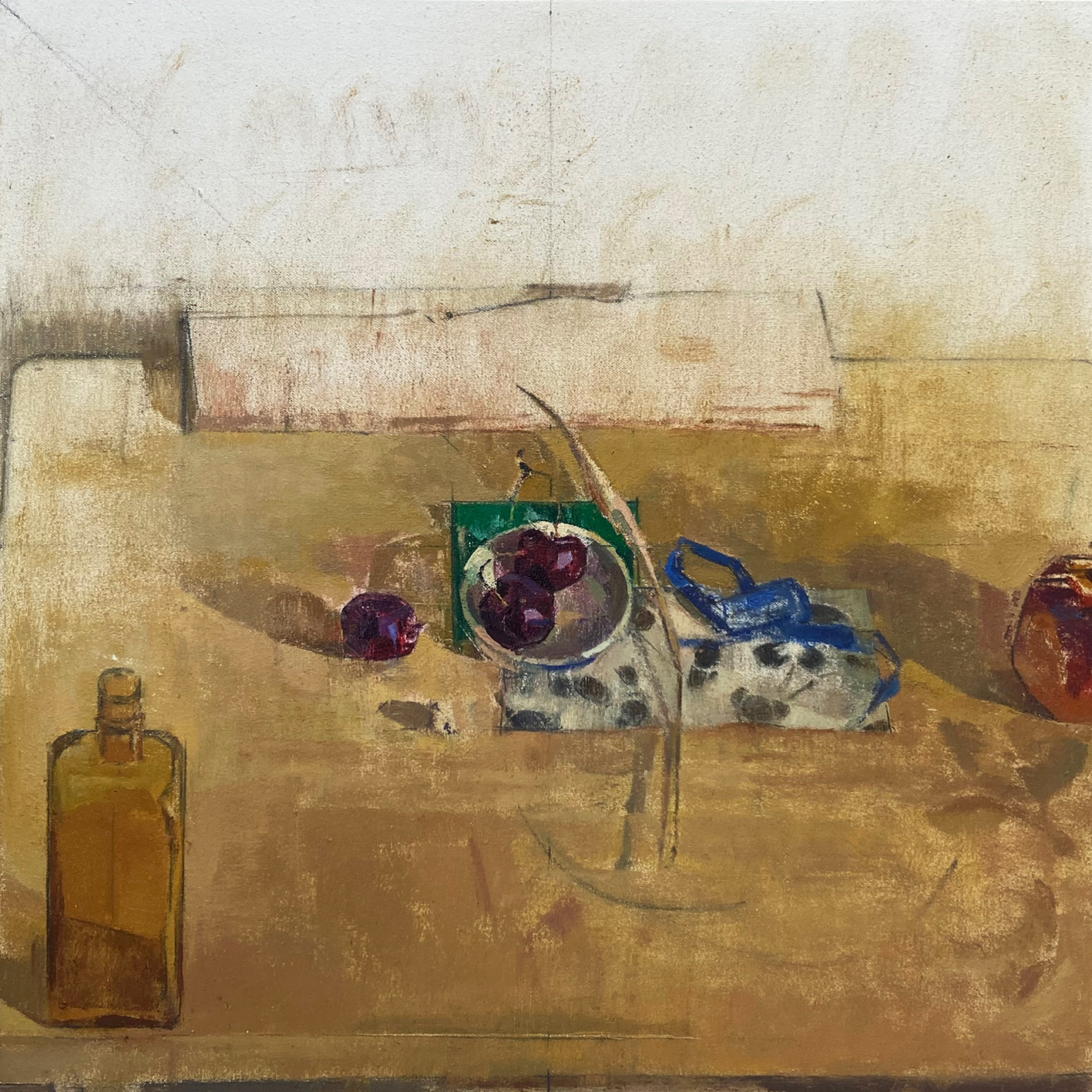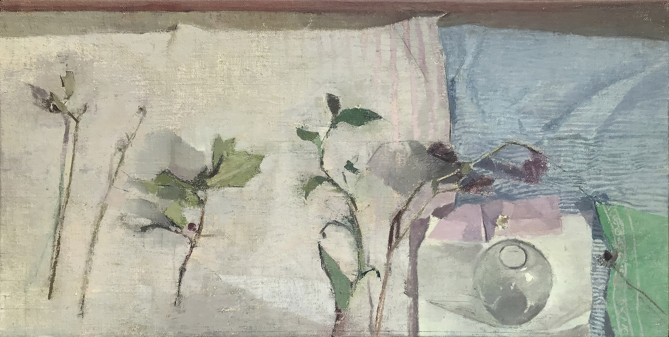 The objects depicted in my still lifes have all been held on to over many years, not only for their visual qualities, but for the attachments to certain memories, places and people they hold for me. Old clothing, dishes, vases, hemlock cones, birds nests, fabric scraps and stones all contain small stories and memories.