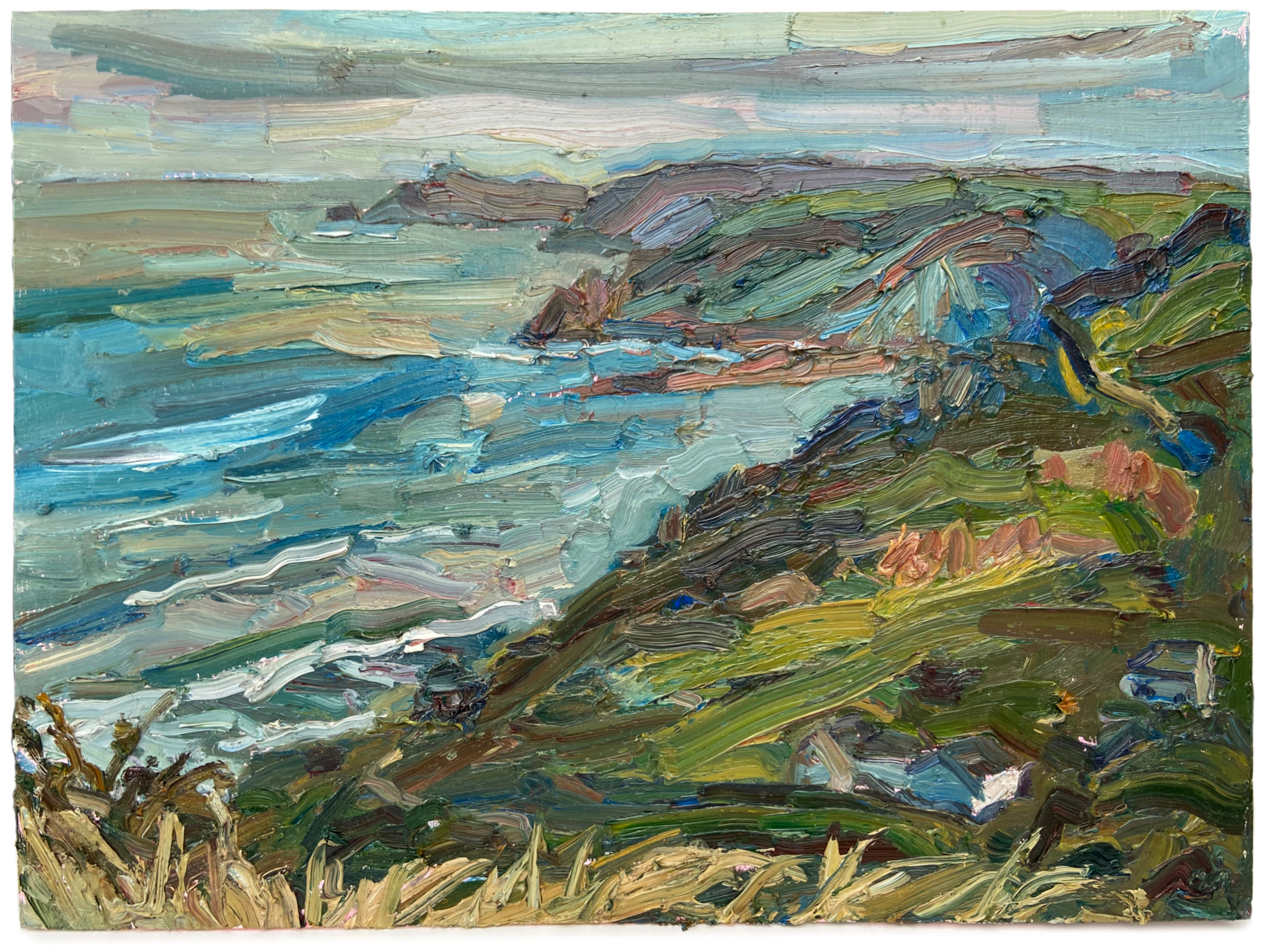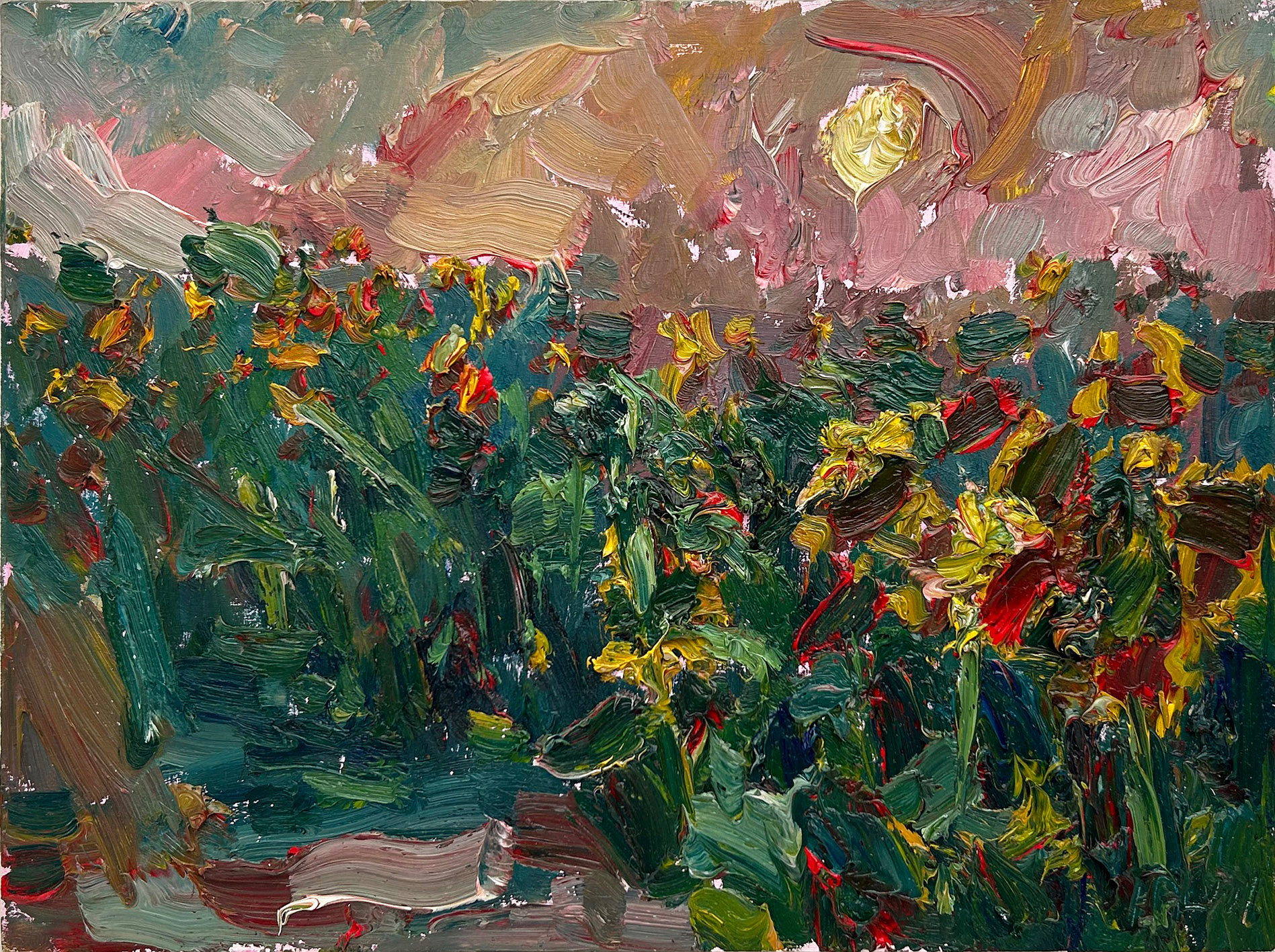 Oil paint provides a responsive and sensuous vehicle for me to convey emotions with; I feel something of the experience of making becomes embedded in the paint, resulting in energised images which speak to the viewer on a visceral level. Ultimately, my work is celebratory – memorializing light, life and landscape through the vibrant medium of paint.