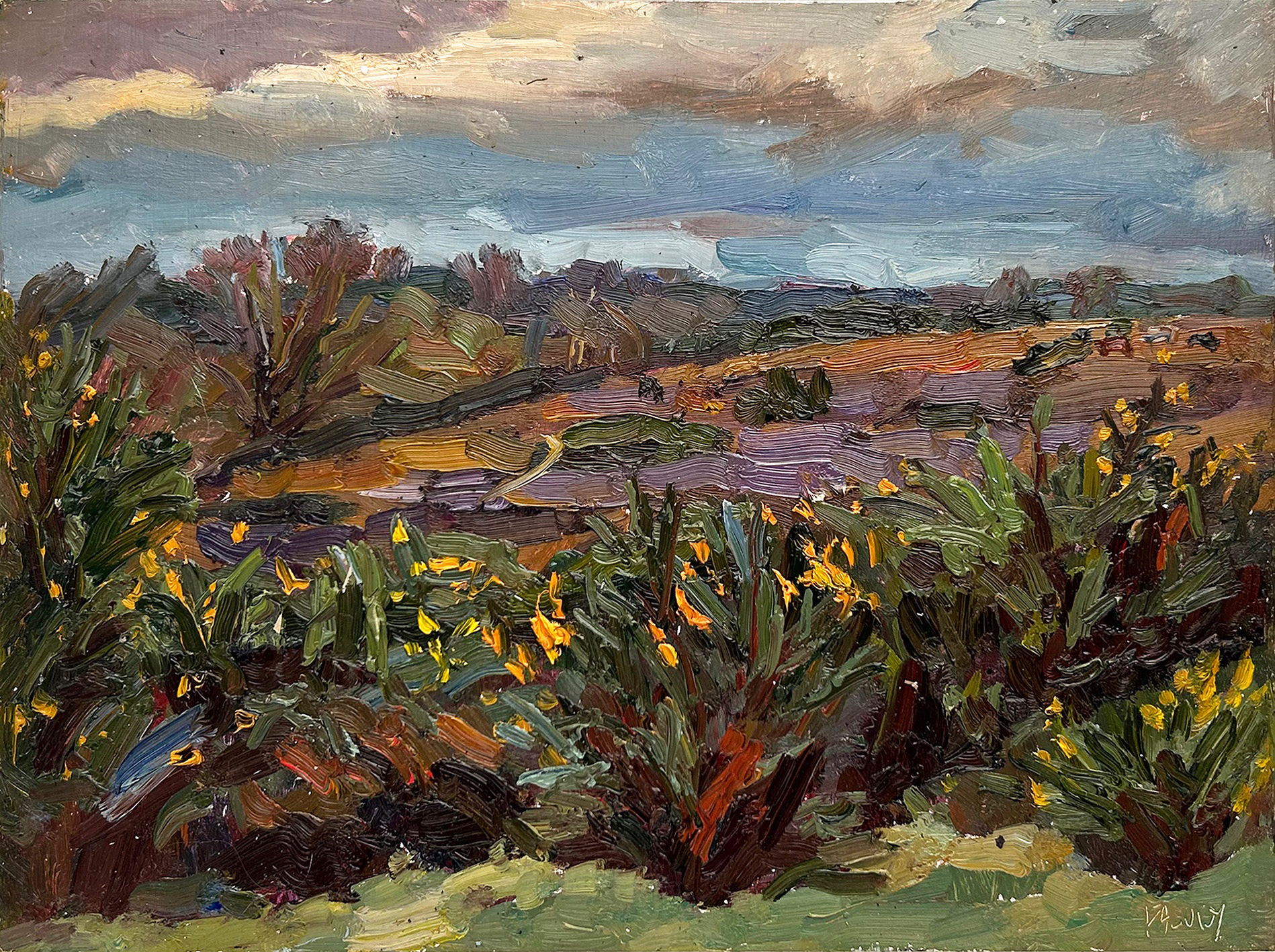 I am a painter working en plein air in the landscape and it is this connection that creates the ‘inner content’ of the work for me - building an intimate relationship with the outer world which brings the work alive. I work in an expressive, energised way, much influenced by 20th Century painters such as Bomberg, Auerbach and more contemporary artists including George Rowlett.