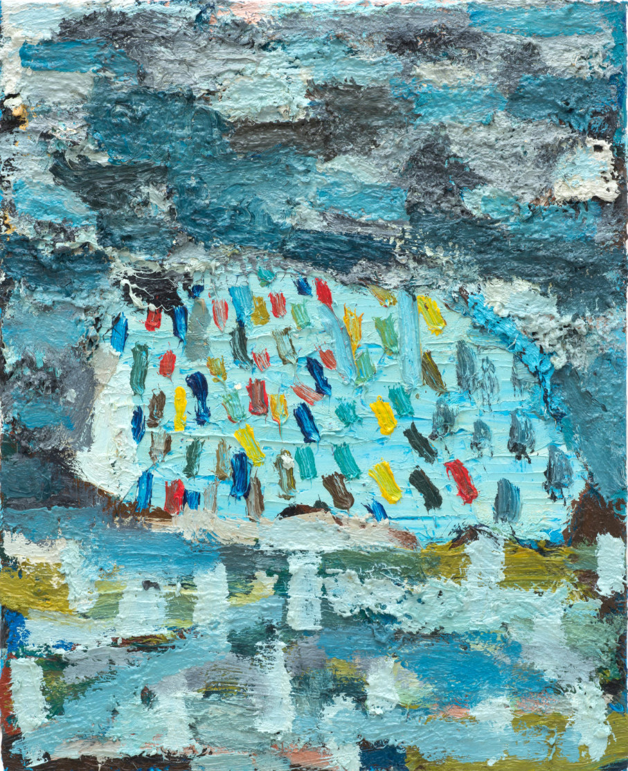 Once he finds something that interests him enough, the subject may become a repeated motif, his fixation. An image as simple as fish on a Brixton Market stall can be repeated in different colours, from every conceivable angle, in formal lines or twisting circles. Rather than painting a literal translation of the subject matter, he prioritises sensations, mixing direct observation and memories in an attempt to unearth a sense of magic from everyday scenes.