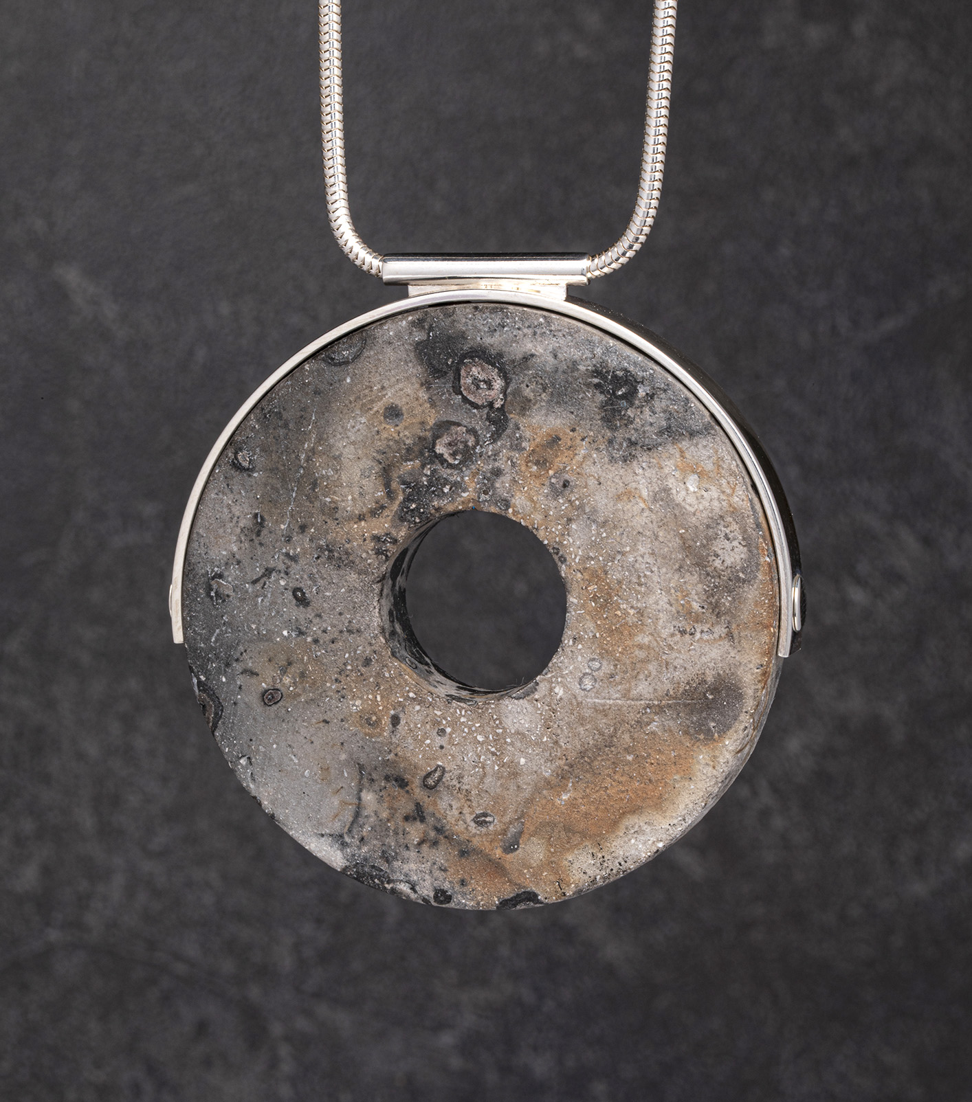 Saggar fired stoneware and sterling silver