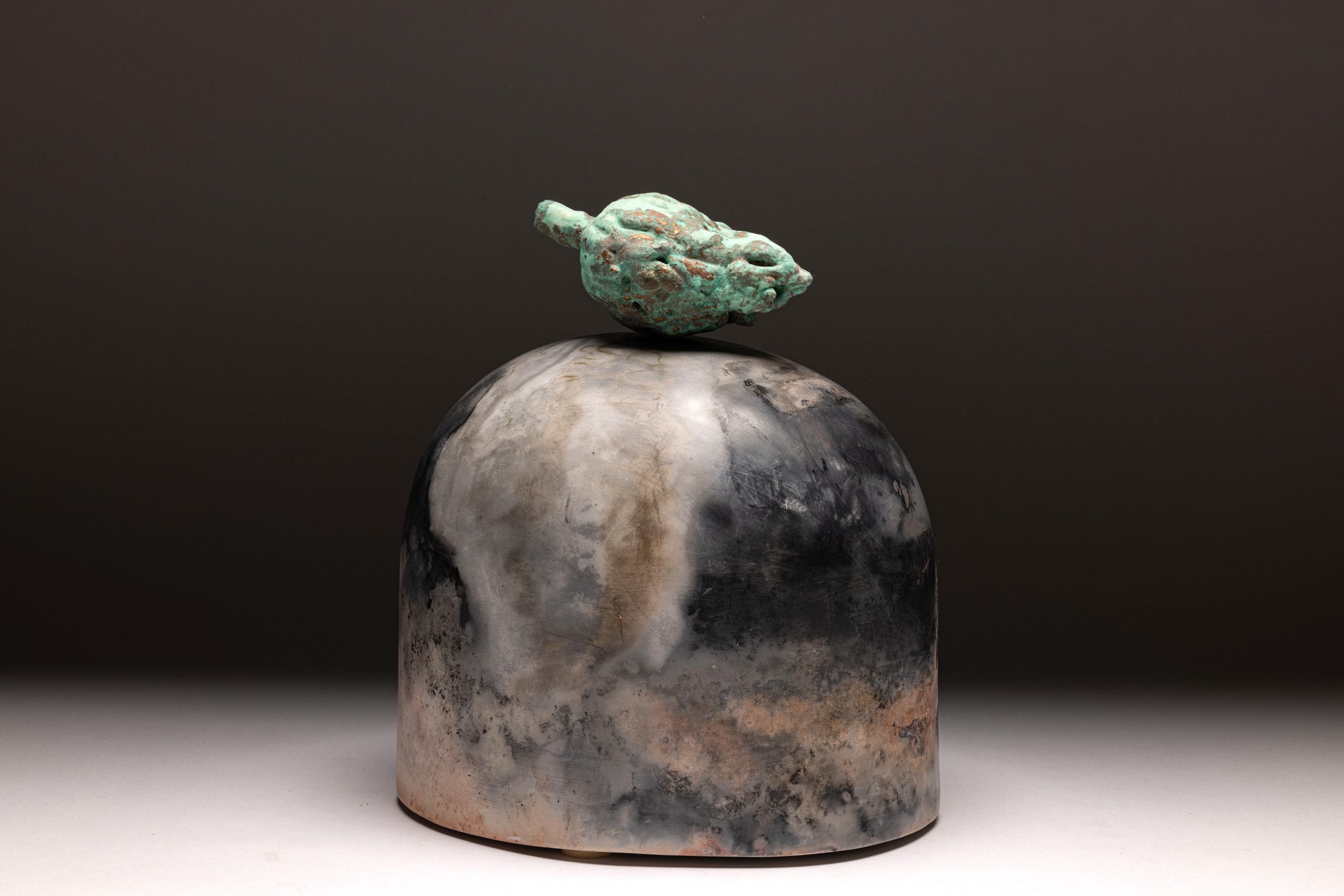 Saggar Fired Porcelain, Cast Glass, Grey Stoneware, With Vertigris Copper Leaf
