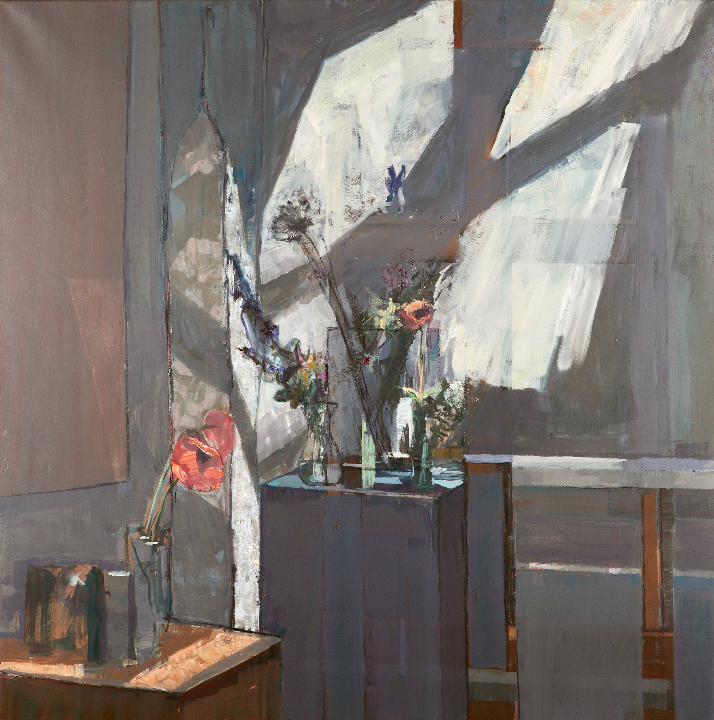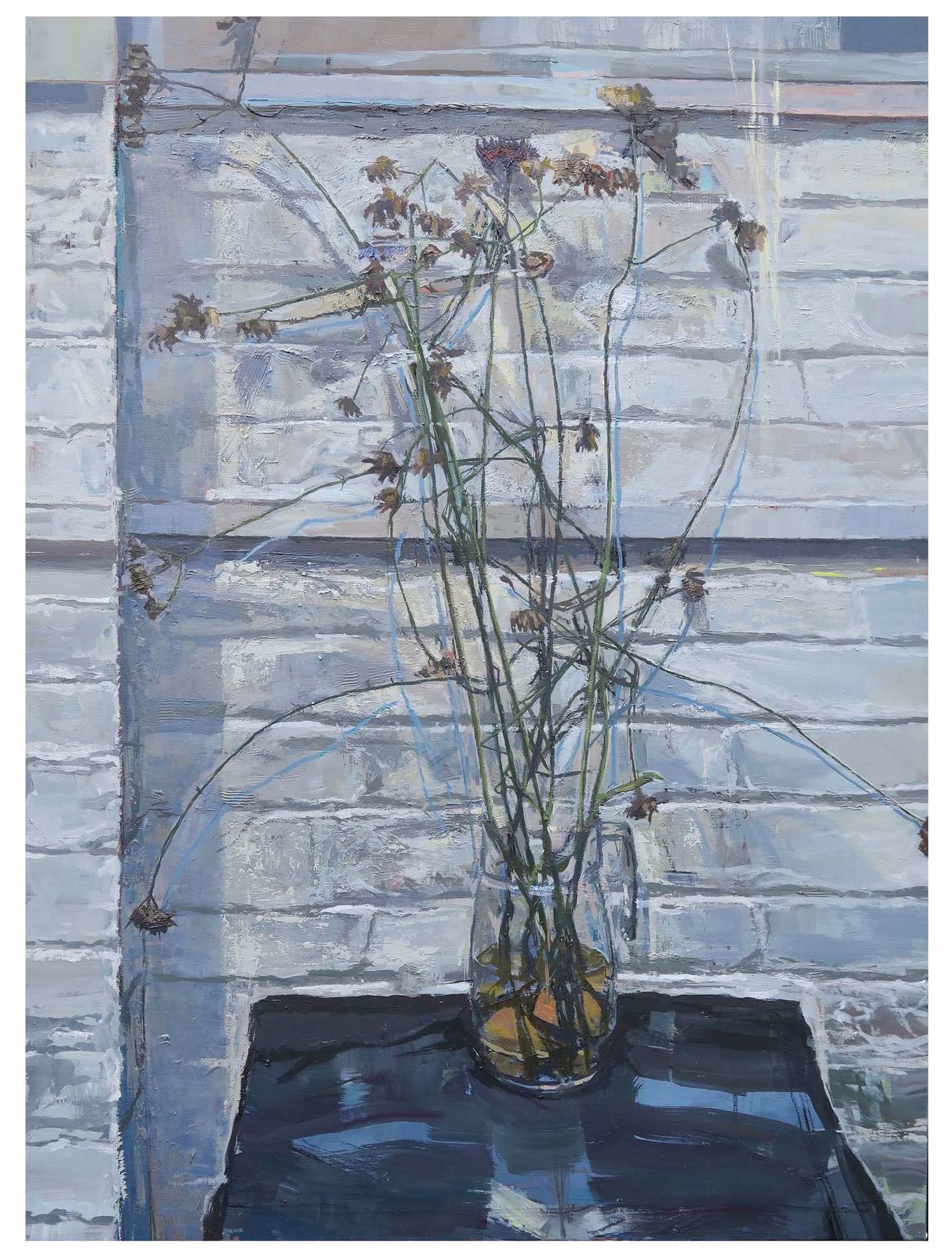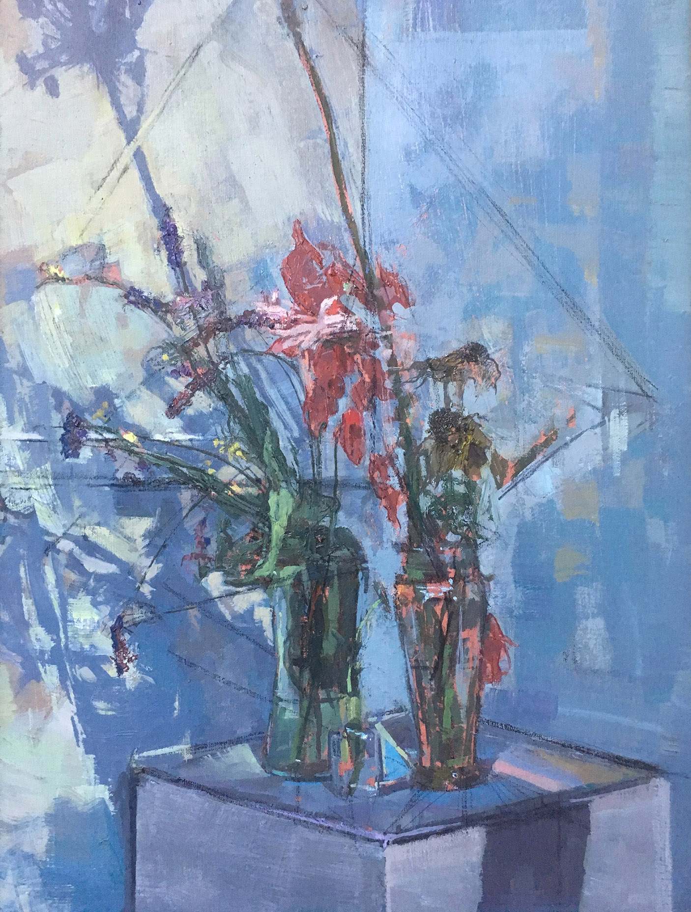 “Observation is of prime importance to my work. My paintings develop out of my drawings. There is a constant considered figurative / abstract interplay, a desire to find the essence of my motif whether the subject is an industrial interior or single flower. Thumbnail sketches that develop into small paintings, mixed media, ink and pastel studies.