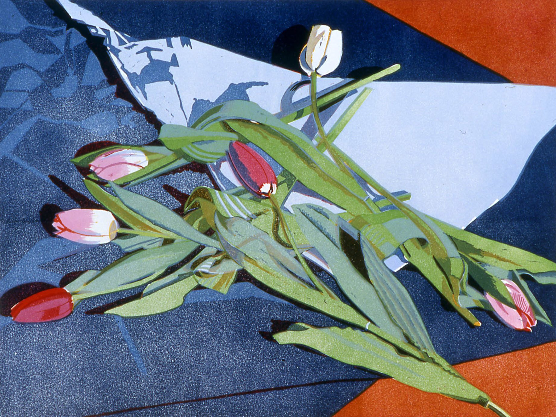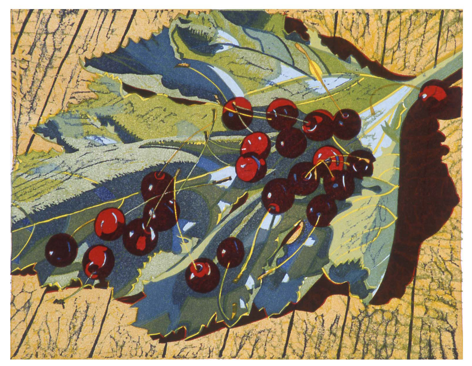 5 Block Linoprint. Printed on handmade Japanese Kozu Natural paper. Edition of 50, this print is 10/50.