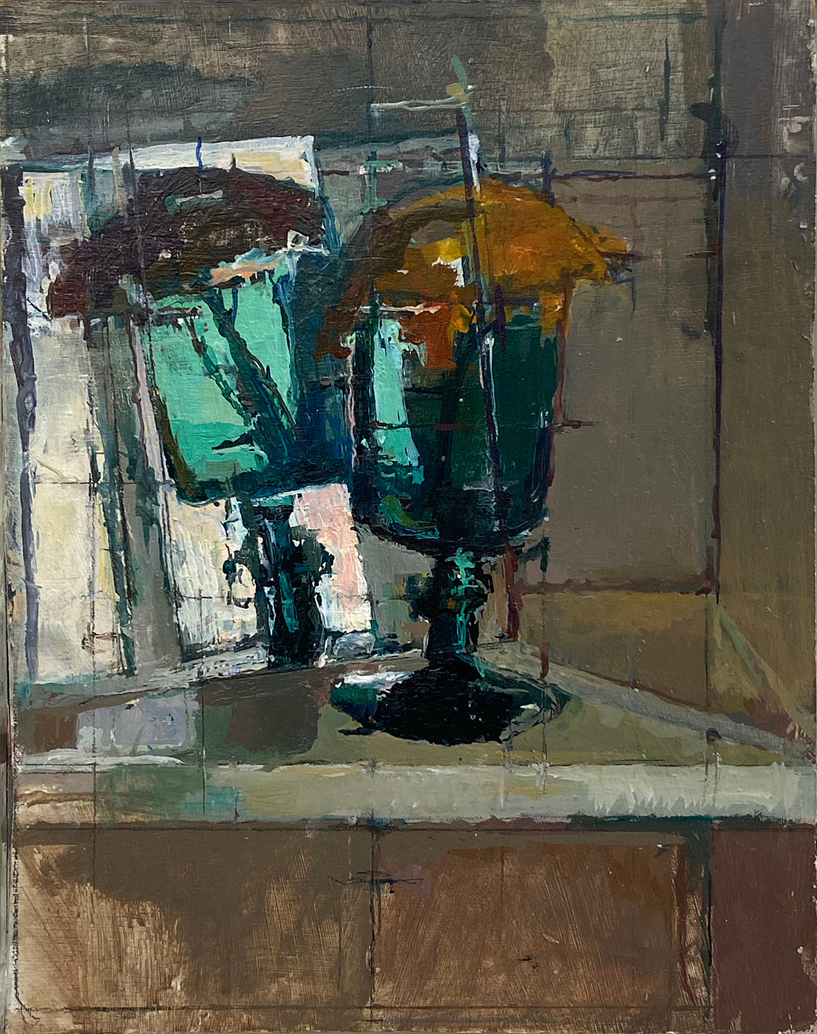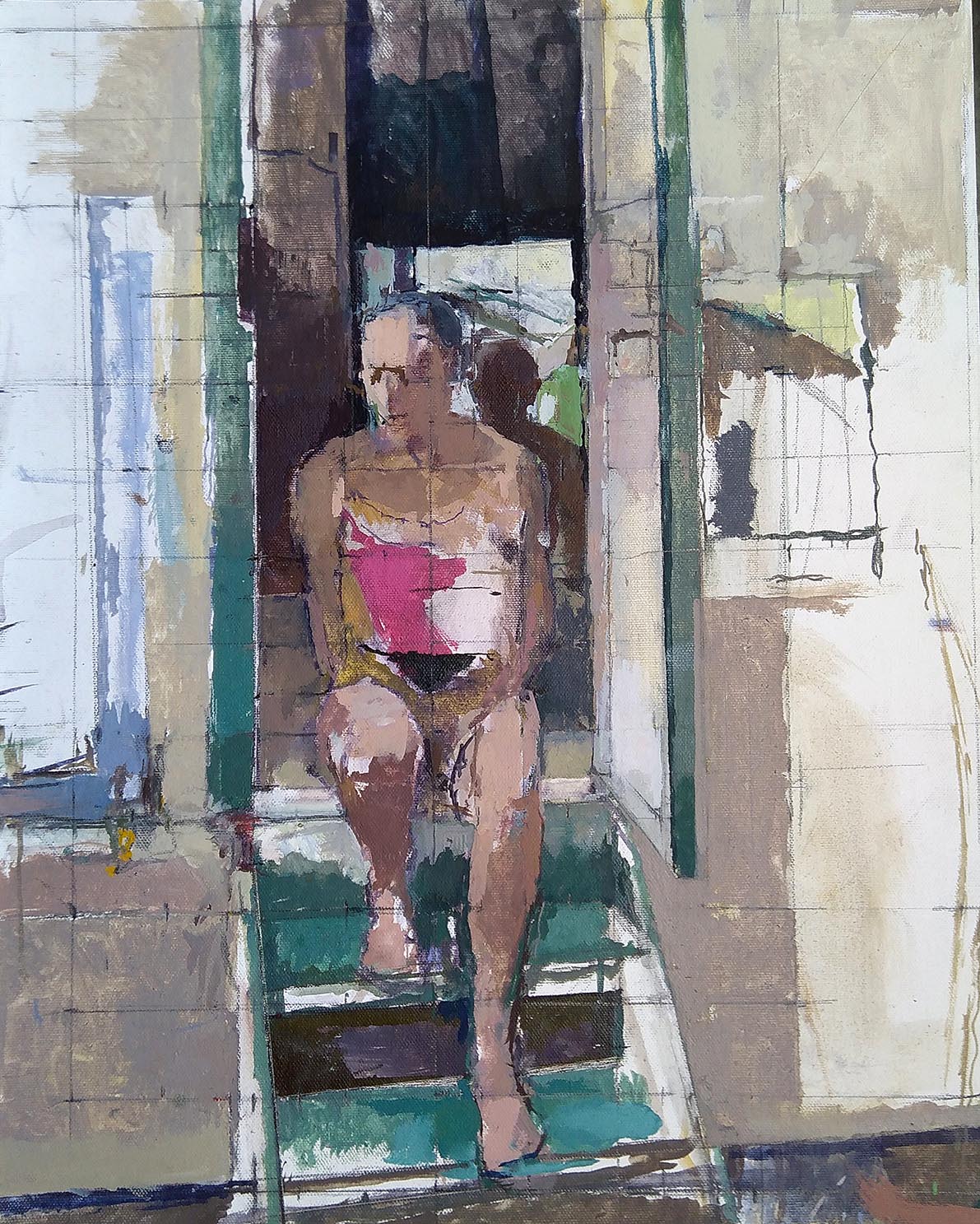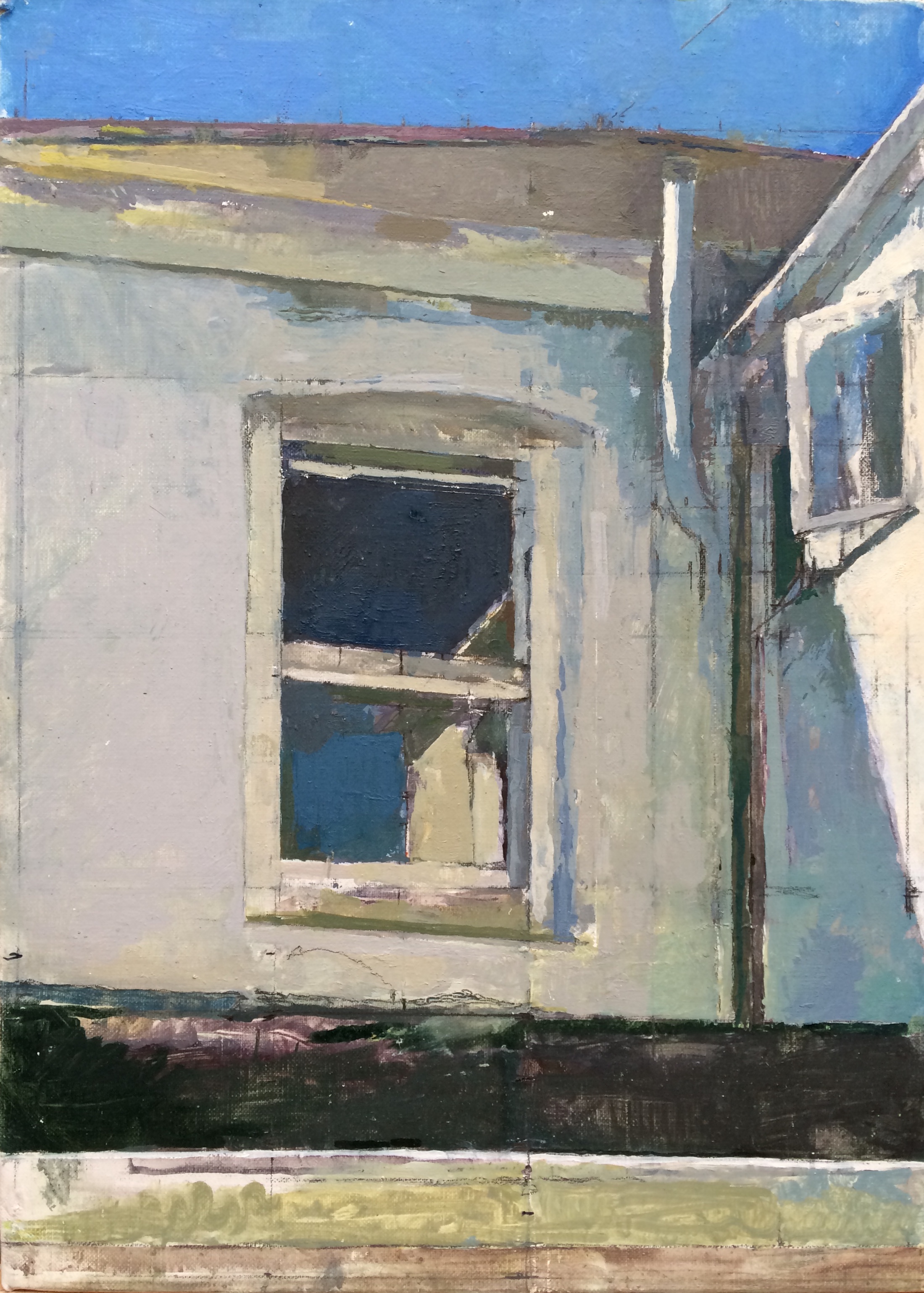 My influences include De Hooch, Rembrandt, Ingres, Diebenkorn and Chardin. Adjustments of line and proportion help me get closer. I work directly in front of the motif. I try to make its presence; its ‘nowness’ and ‘thereness’ along with my own existence in relation to the motif an almost tangible thing, making it as resonant as possible.