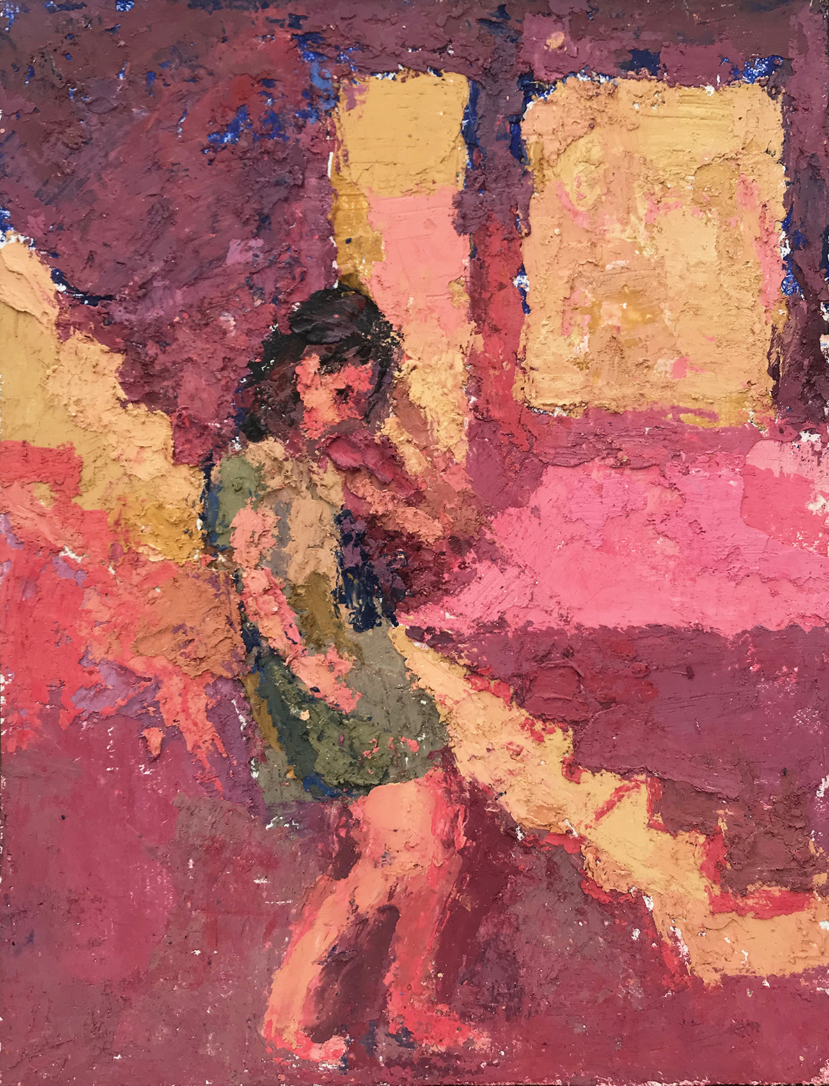 Hot Wax, Oil and Pigments on canvas mounted on wood.