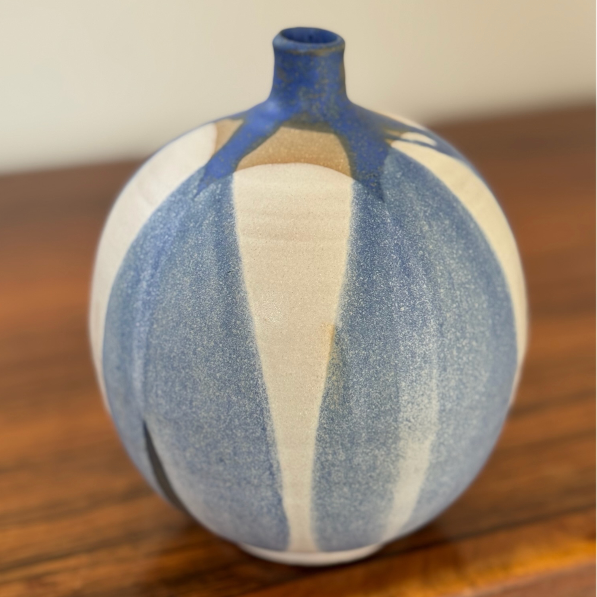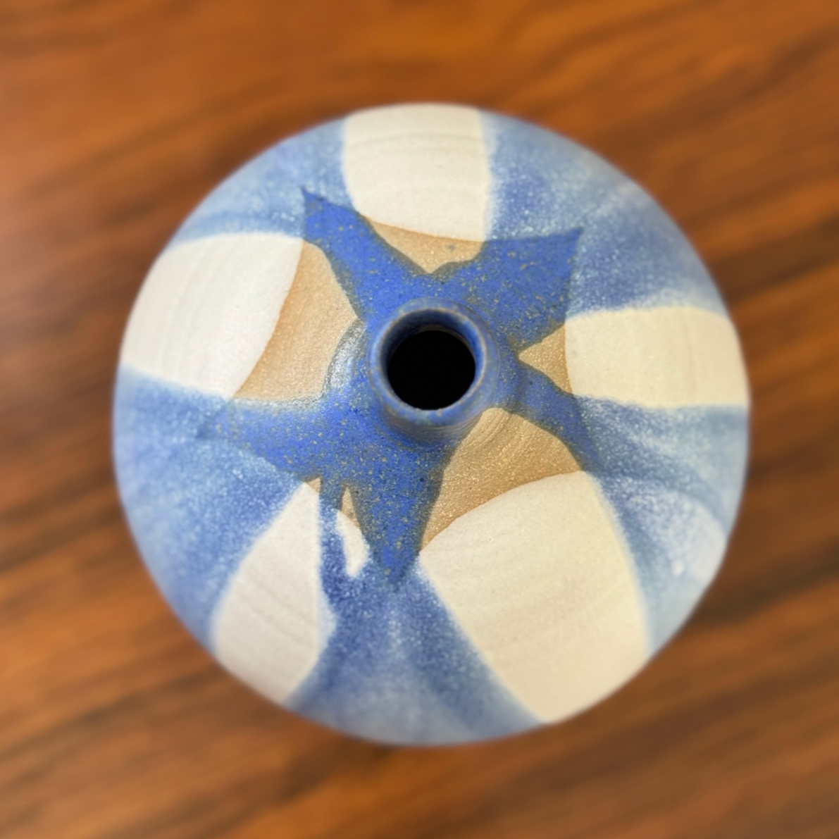 Hand Thrown Stoneware with Overglazes and Oxides. Blue.