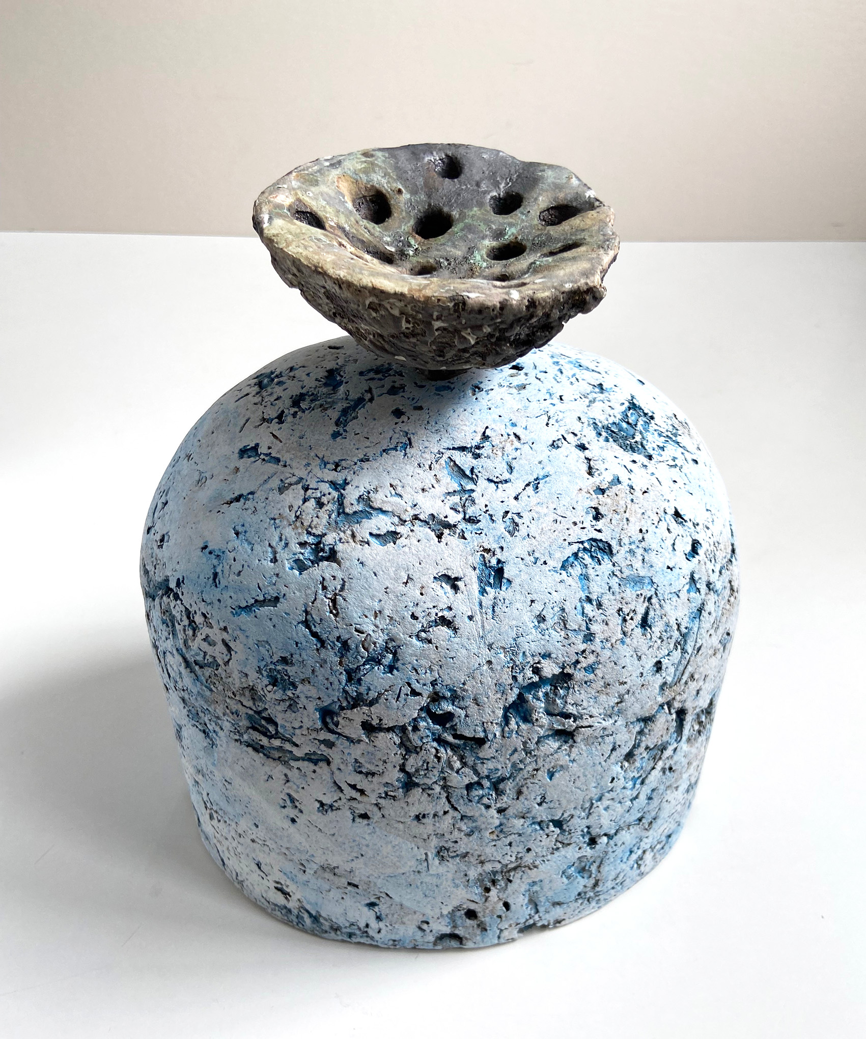 Grey Stonware, Oxides And Underglaze Colour And Dry, Textural Glaze On White Stoneware.