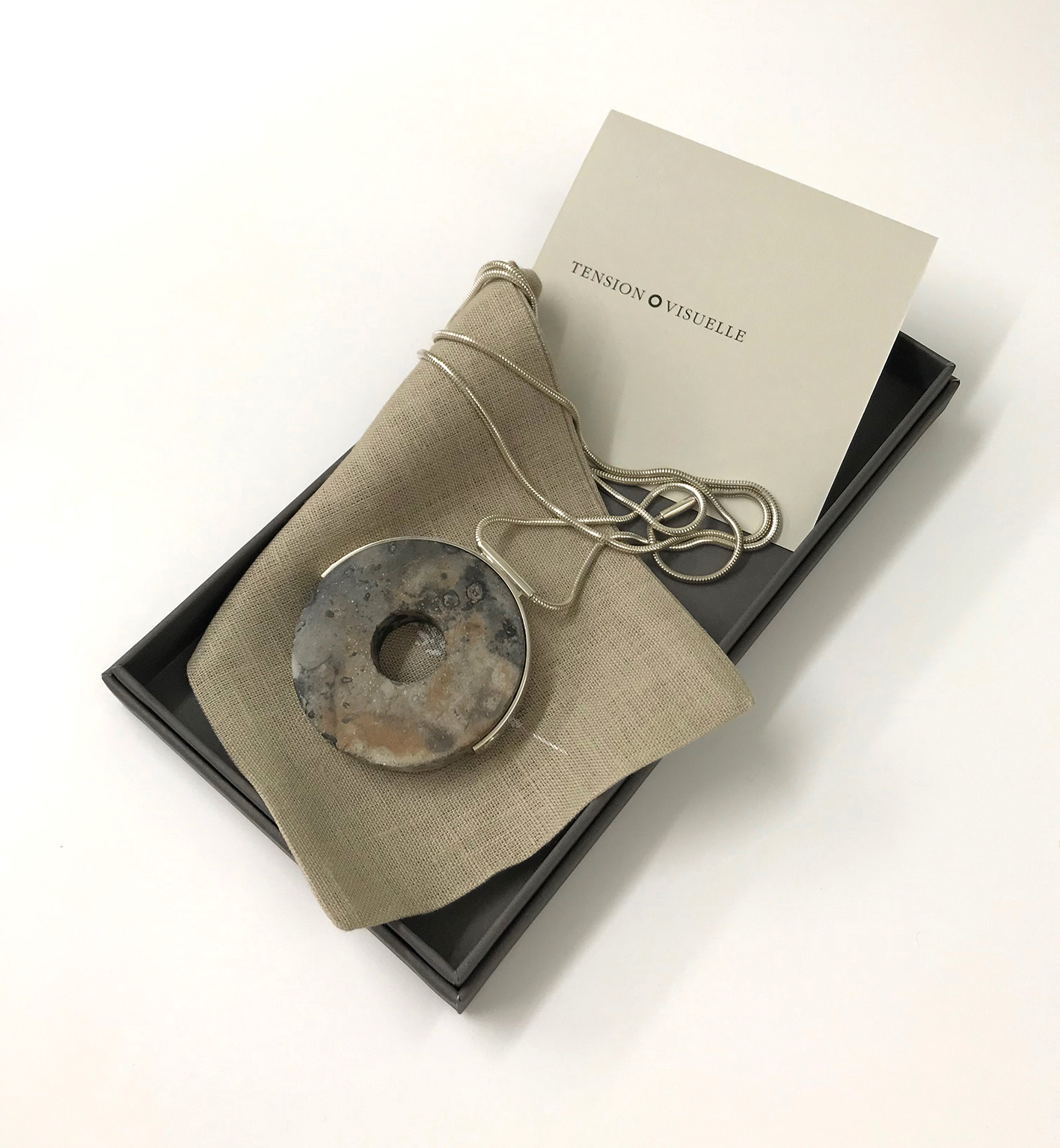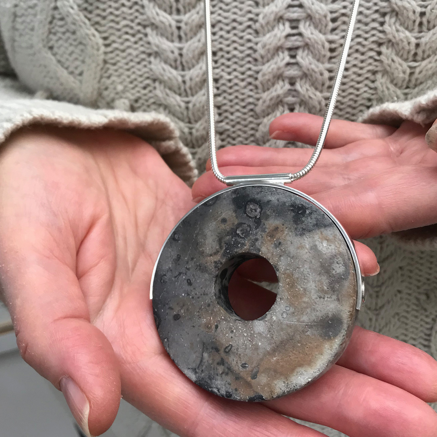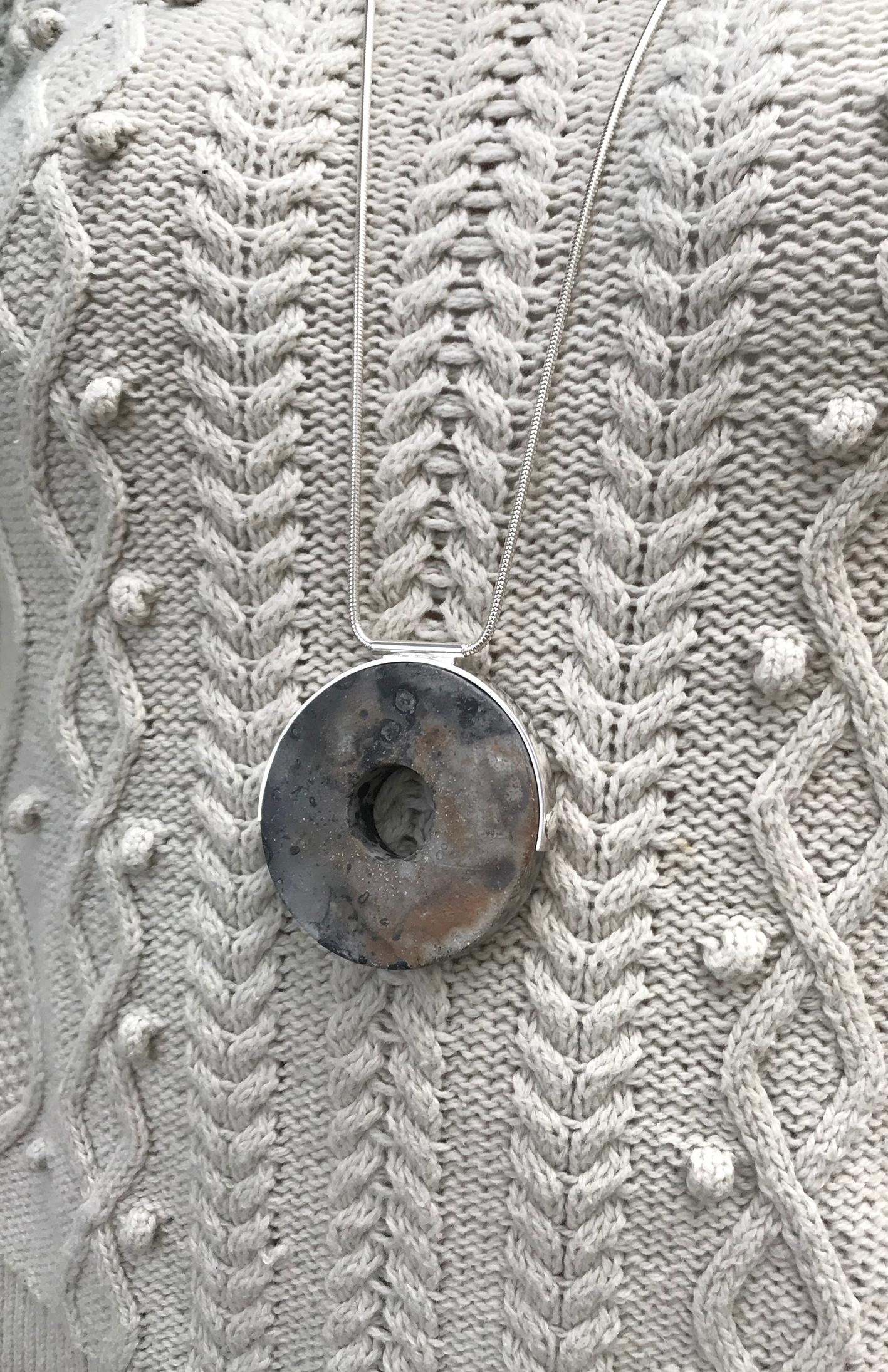 Saggar fired stoneware and sterling silver